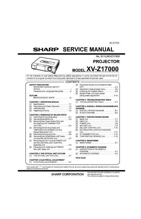 At present you are looking for an Sharp Xv Z17000 Projector Service Manual example that we provide here within some kind of document formats such as PDF, Doc, Energy Point, and in addition images that will make it simpler for you to create an Sharp Xv Z17000 Projector Service Manual yourself. For a better look, you are able to open some examples below. All the illustrations about Sharp Xv Z17000 Projector Service Manual on this site, we get from many sources so you could create a better record of your own.